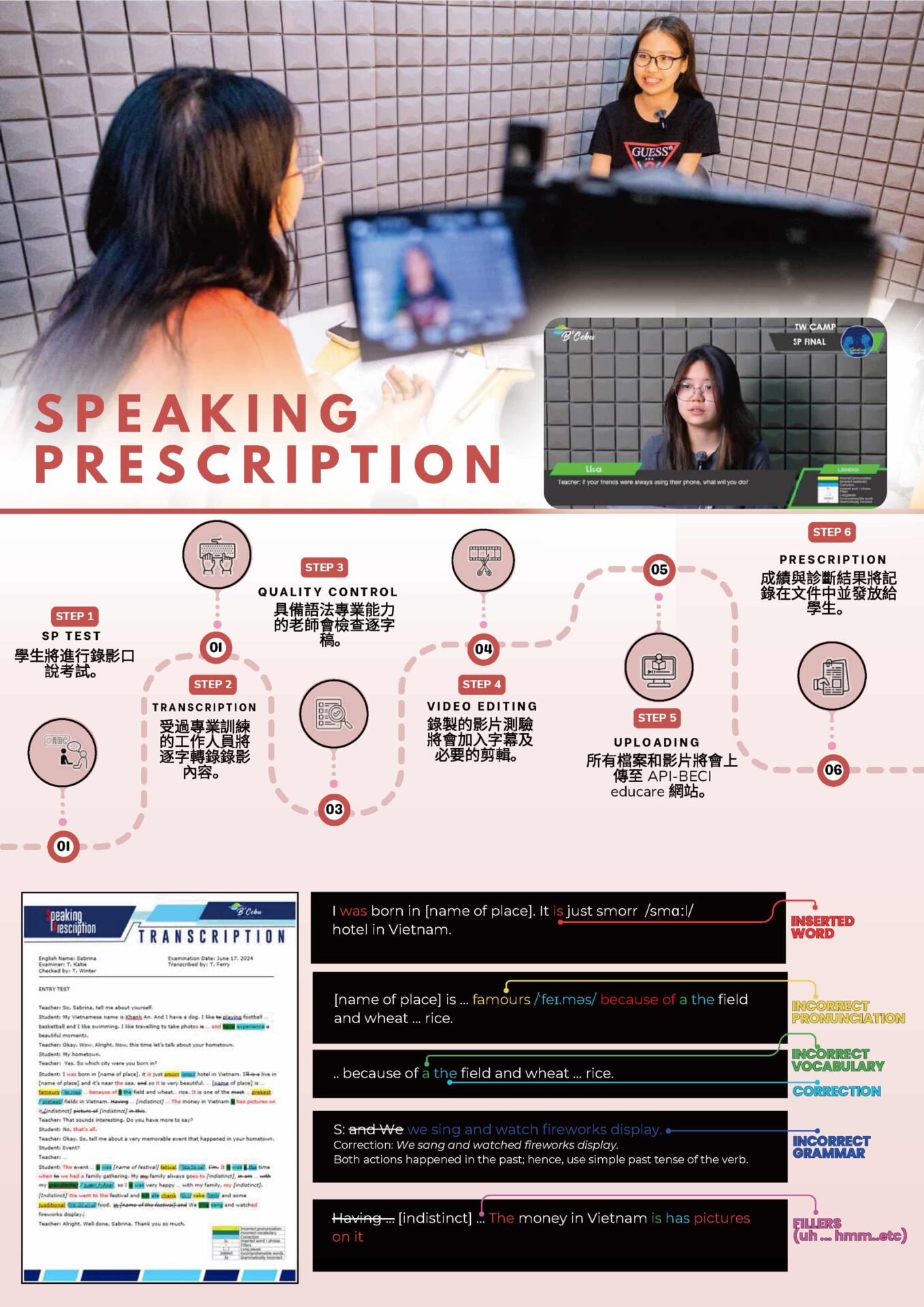 5.獨家SP口說診斷系統:獨家韓國專利課程,錄影檢測學生口說,精準找出弱點並追蹤進步,強化實際英語溝通能力。